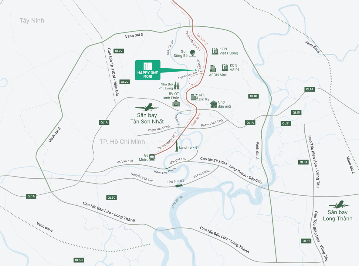 Happy One Mori là dự án căn hộ cao cấp mới nhất thuộc chuỗi sản phẩm mang thương hiệu Happy One, được định vị là một biểu tượng sống hiện đại, đẳng cấp, lấy cảm hứng từ phong cách tinh tế và tĩnh tại của Nhật Bản (Mori – Rừng/Thiên nhiên)